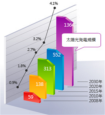 - 2030年までに53GWを追加増設するためには、年平均3GWの投資が必要であり、太陽光投資規模は