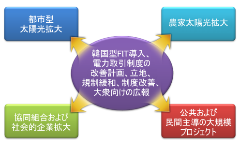 - 現在まで韓国の再生可能エネルギー政策は廃棄物中心でしたが、これからは太陽光と風力を中心に