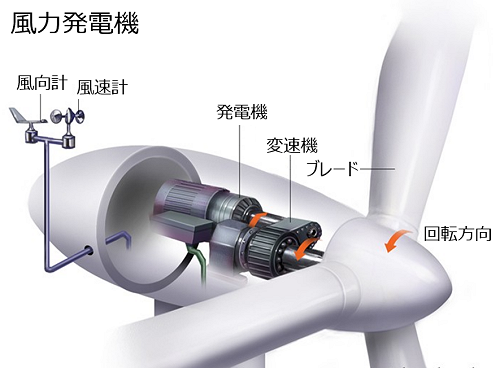 ブレードの回転力をギアボックスと発電機に伝達する設備 |
